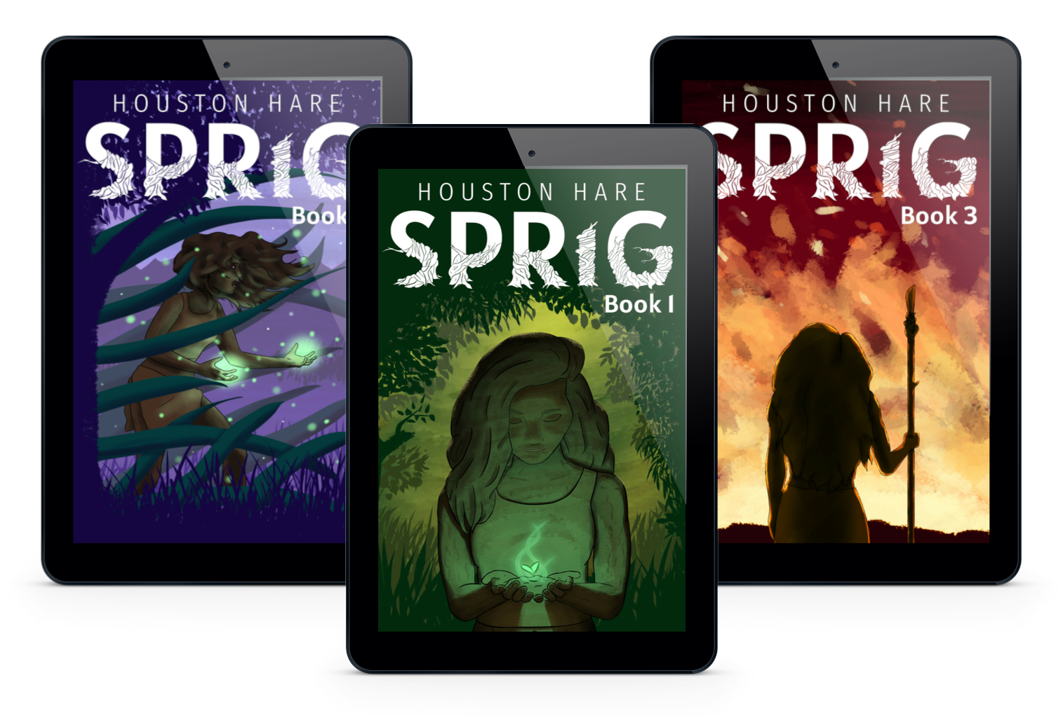 The Sprig Trilogy ebook bundle contains ebooks of all 3 books. These come in EPUB, MOBI, and PDF formats.